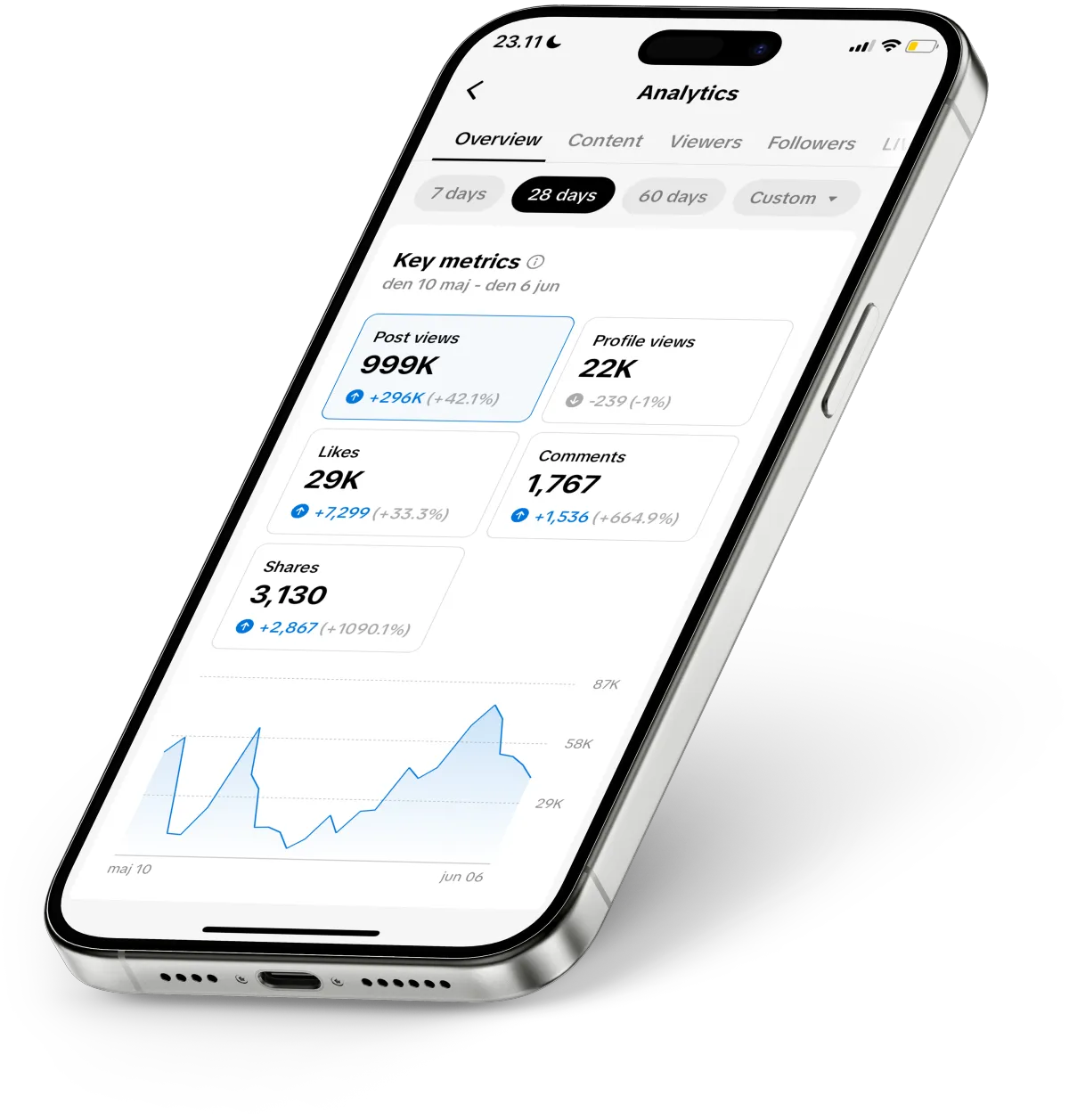 Uanset hvilken platform du foretrækker, hjælper vi dig med at være konsekvent til stede med indhold, der føles naturligt, værdifuldt og skabt for at skabe kontakt - ikke bare for at fylde plads.